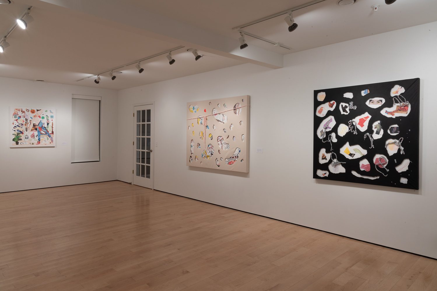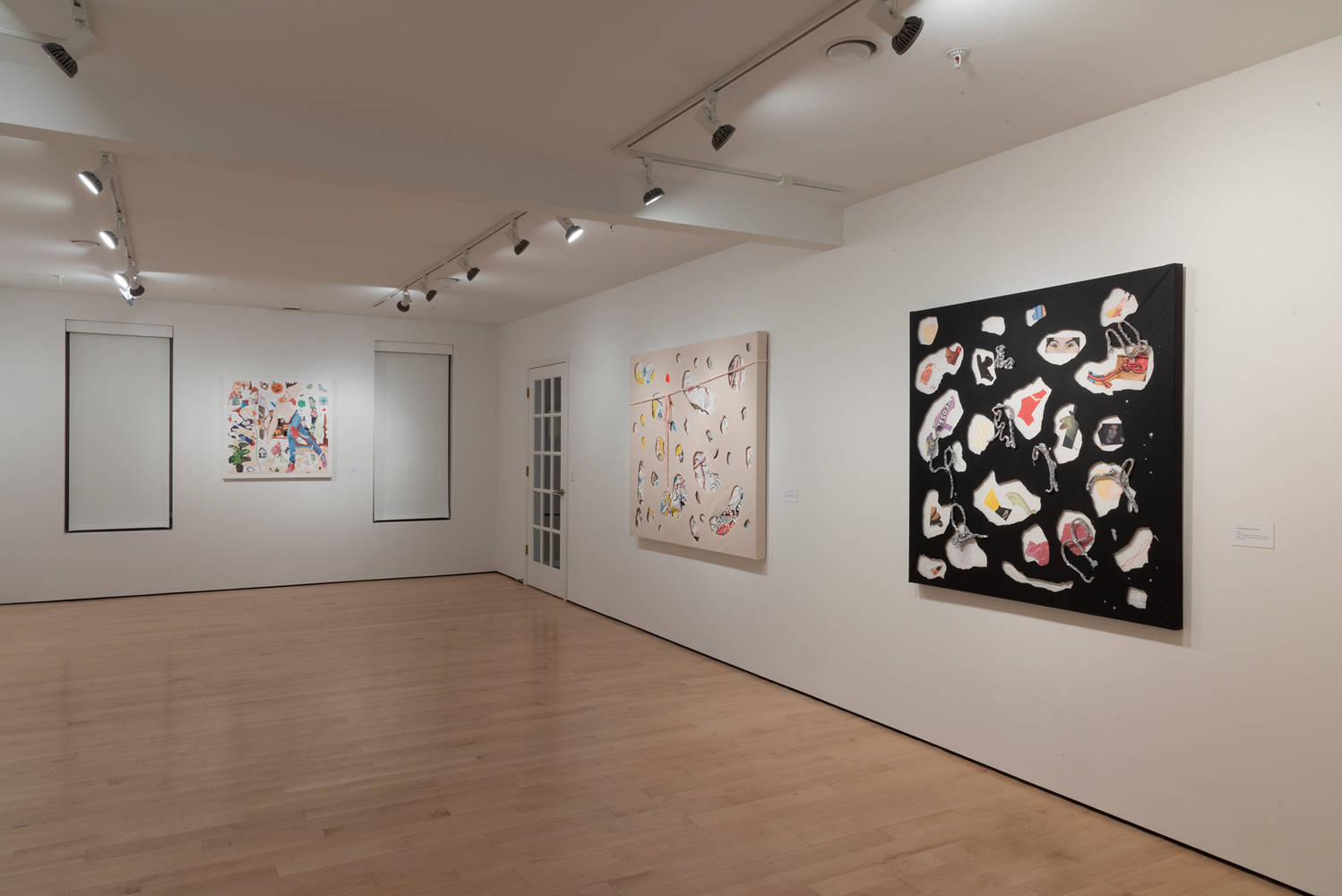 Click to view empty gallery space with various paintings and artwork hung on the walls Full-Screen