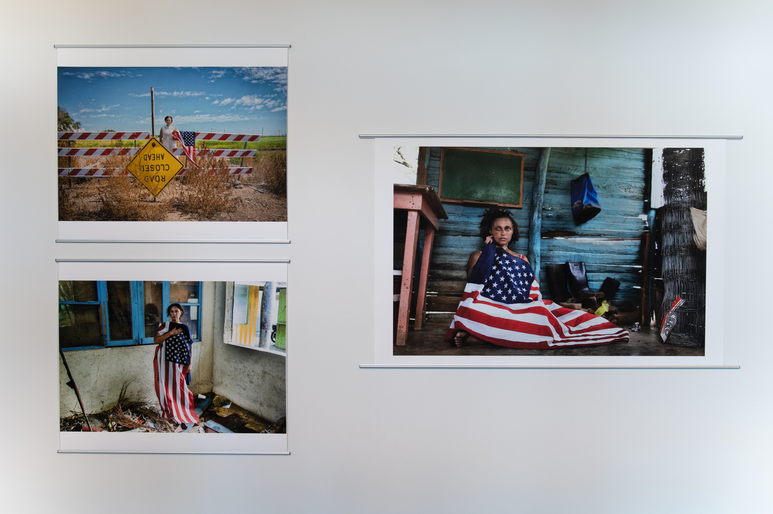 Click to view display of three images featuring an individual holding an American flag by Joann Quinones Full-Screen